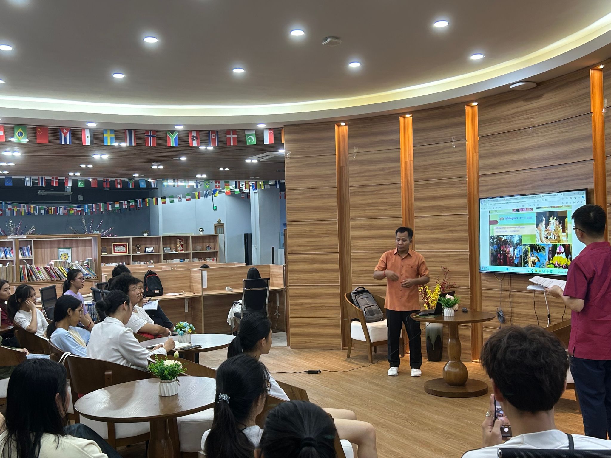 11月12日,今年会国际语言体验中心成功举办了第四期国际语言文化沙龙活动,本次活动荣幸邀请到了今年会柬埔寨外籍教师陈龙老师,他以“柬埔寨传统婚俗文化”为主题,为师生们带来了一场精彩的讲座。