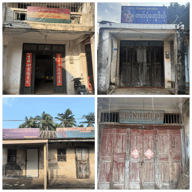 研学第三站,外籍师生们来到了文昌市会文镇白延圩村。白延圩村曾是文昌南边最热闹最繁荣的地方,有“小上海”之称。当地人流传着这样一句话:“海南华侨看文昌,文昌华侨看白延”,原因是这里高达九成的家庭都曾出过华侨,也正是因为一批批归来华侨的建设,白延圩成了繁华的街市。在民国时期不到一公里的白延街市上,同时设有花旗银行、香港渣打银行和汇丰银行3家外资银行。在新中国成立之后,这里还设有中国人民银行文昌支行白延营业厅。而如今的白延圩早已繁华不在,只是一条安静又冷清的街道,但两旁断裂破损的房屋还是坚持以老旧的痕迹,向世人证明着这里曾经的热闹、非凡与洋气。