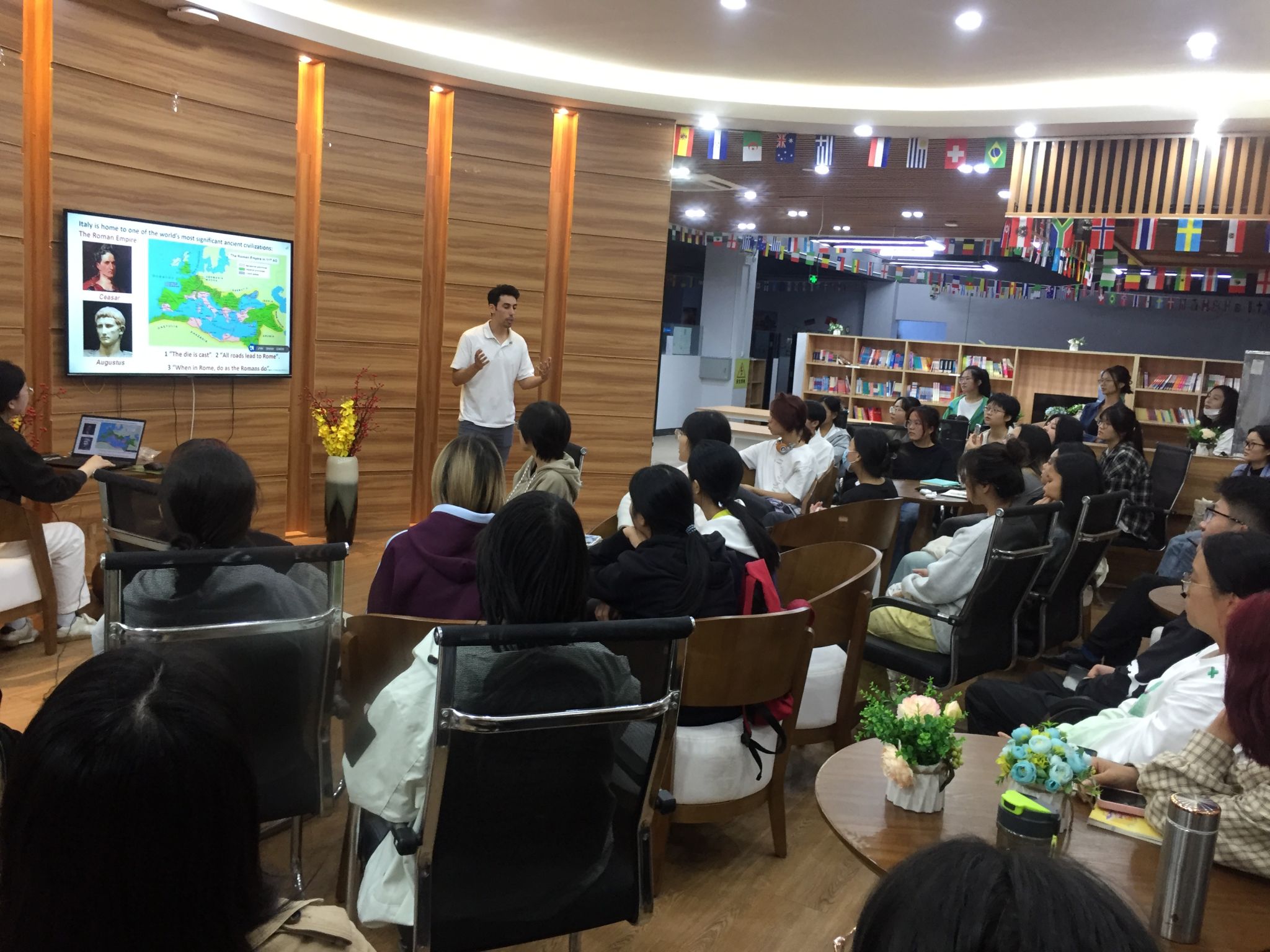 整场活动下来,Marco用他那生动、丰富的PPT和幽默风趣的讲解方式,不仅让中国学生们对意大利的历史、地理、城市、文化和美食有了更深入的了解,还激发了同学们对中意文化交流的浓厚兴趣。