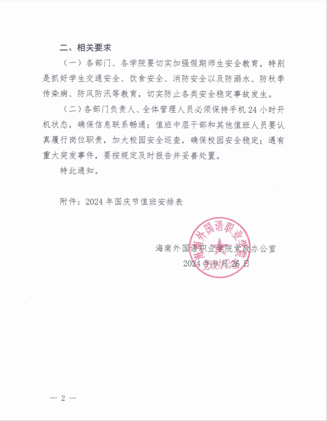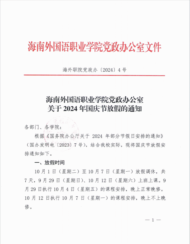 jinnianhui今年会党政办公室关于2024年国庆节放假的通知