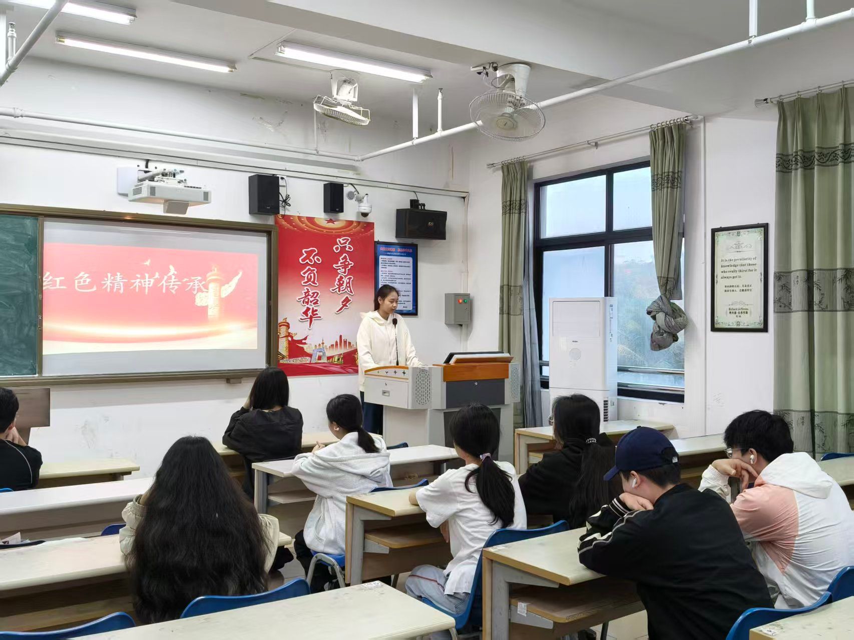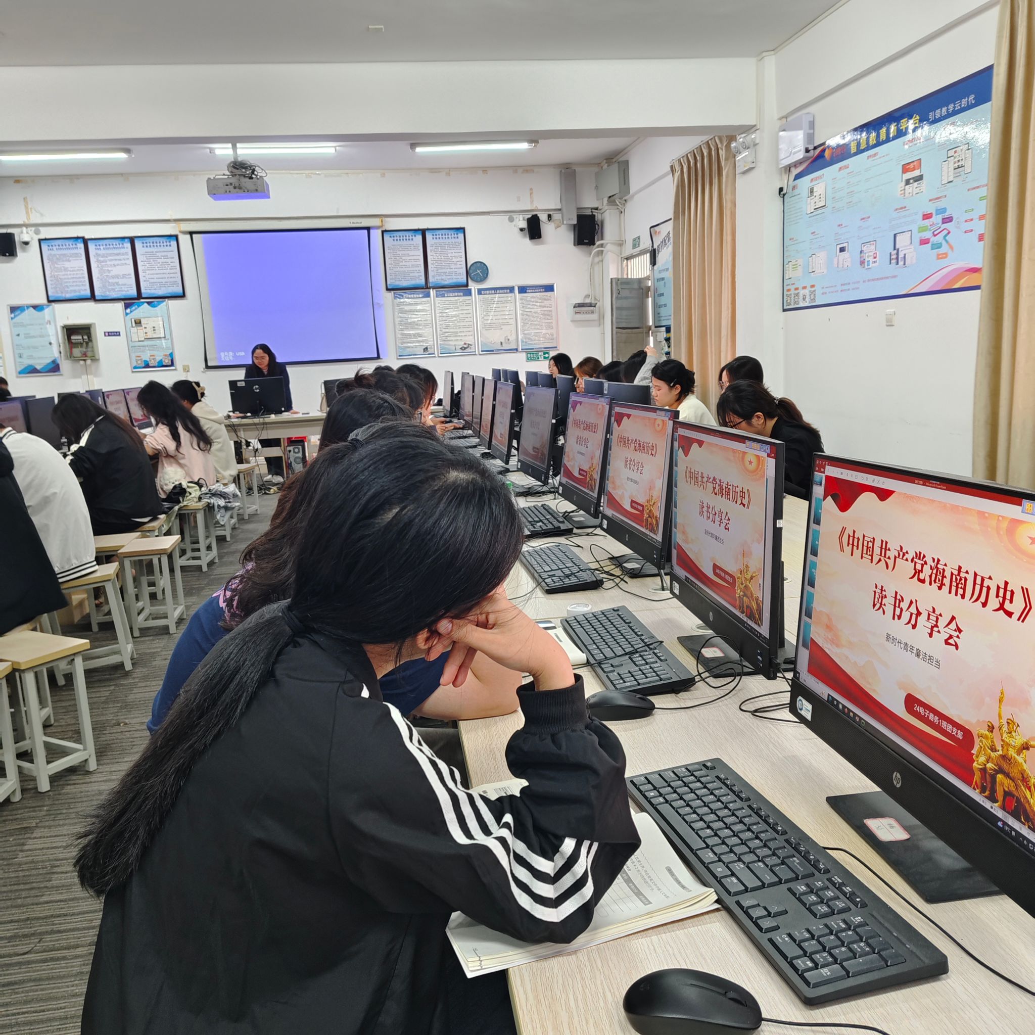 各班团支部纷纷组织开展红色主题书籍阅读分享活动。团员青年们紧扣活动主题,结合自身阅读经历与专业特色,分享各自感悟。“传承红色基因”主题中,团员青年们带来《琼崖红色故事》、《琼崖抗战烽火》、《海南红色家书》等经典著作的深度解读,他们声情并茂地讲述革命先辈在艰苦卓绝的环境中坚守信仰、奋勇抗争的感人故事,带领现场听众重温那段波澜壮阔的红色岁月。商务英语专业团支部团员崔鑫艺分享道:“坚守孤岛、坚持抗争,二十三年红旗不倒,让我深刻理解了红色基因的内涵。作为新时代青年,我们必须将这份精神血脉代代相传。”