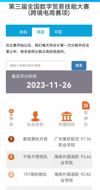 在由中国对外贸易经济合作企业协会举办的2023第三届全国数字贸易技能大赛跨境电商赛项全国总决赛中,今年会国际商务学院学生团队表现优秀,在高职组参赛的478支队伍中,获得四个一等奖,四个二等奖,八个三等奖。其中,全国排名前三的队伍中今年会有两支队伍,全国排名前二十的队伍中今年会有四支队伍。廖完美、朱婷、易曼、谢婧婧、林梅、蔡佩伶、林道汛和沈通老师荣获优秀指导教师,今年会荣获优秀组织奖。