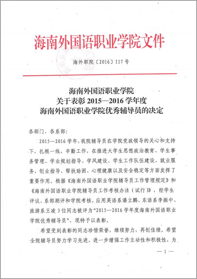 jinnianhui今年会关于表彰2015—2016学年度jinnianhui今年会优秀辅导员的决定