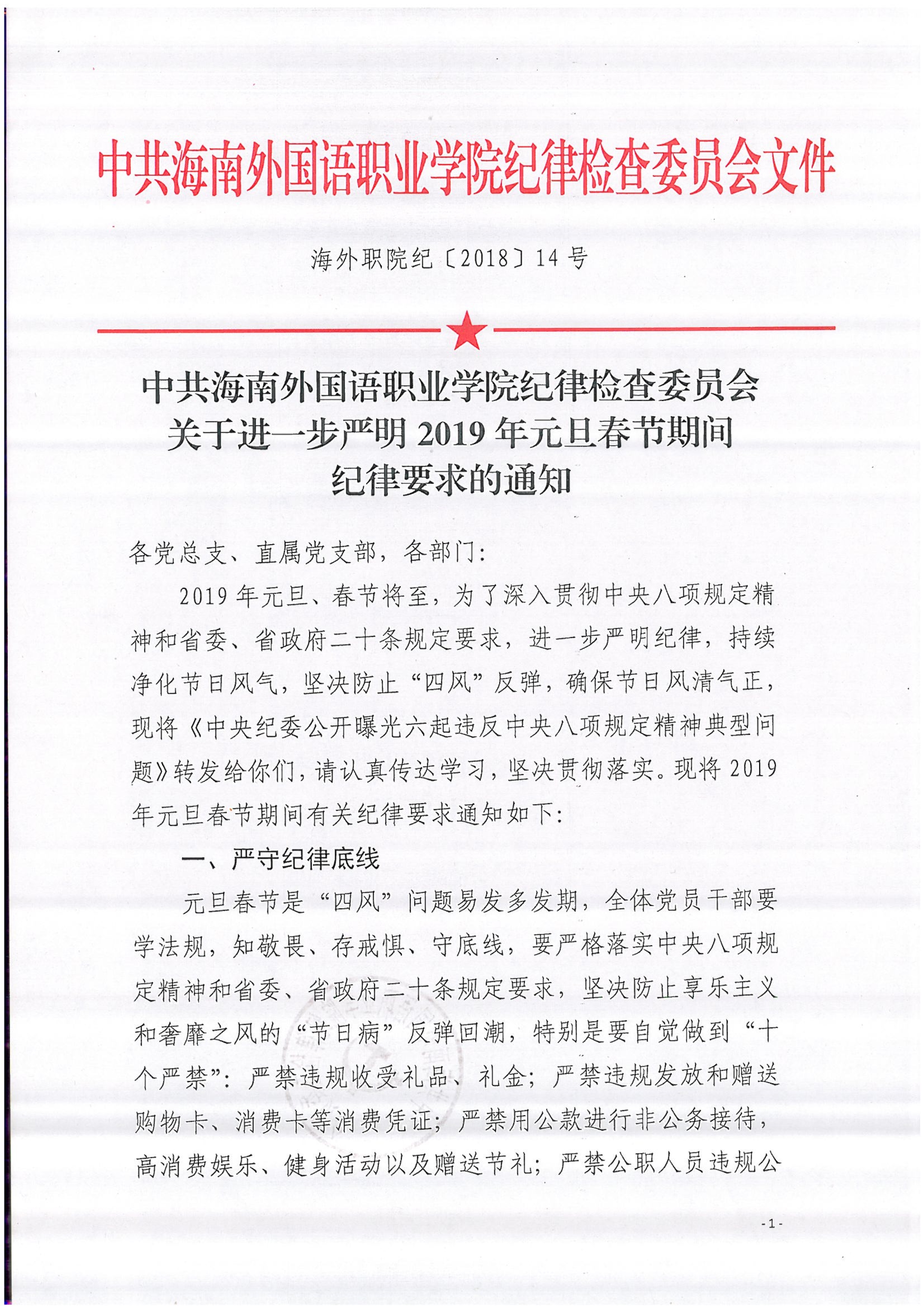 中共jinnianhui今年会纪律检查委员会关于进一步严明2019年元旦春节期间纪律要求的通知