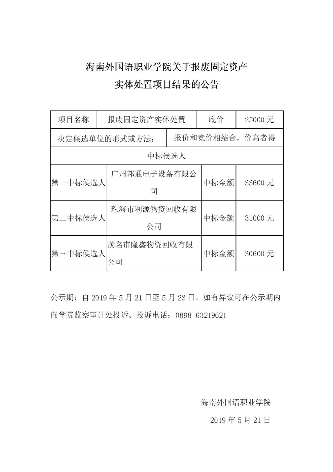 jinnianhui今年会关于报废固定资产实体处置项目结果的公告