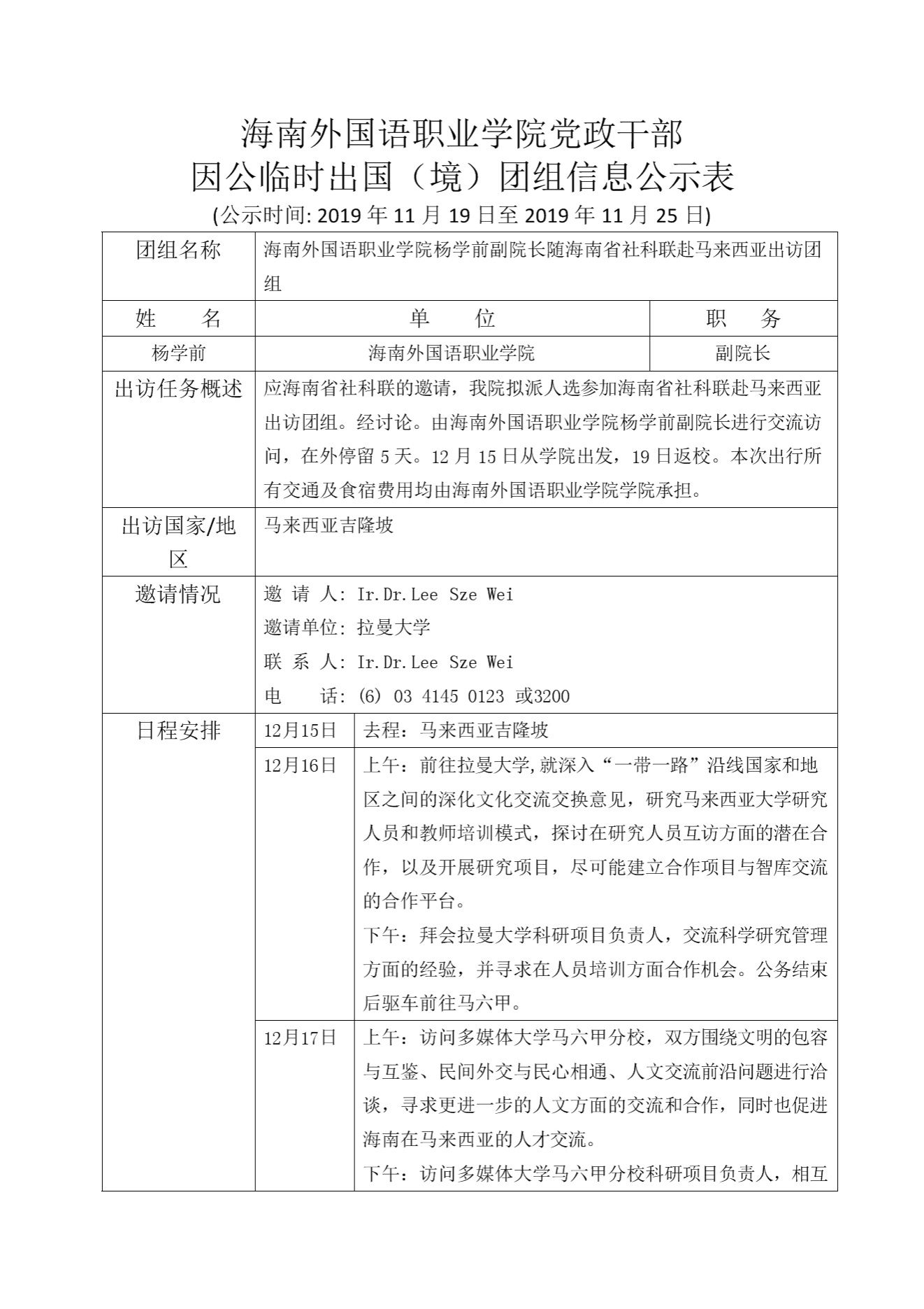 党政干部因公临时出国(境)团组信息公示表