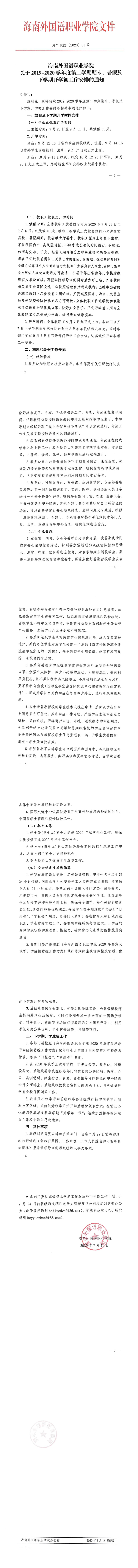 jinnianhui今年会关于2019-2020学年度第二学期期末、暑假及下学期开学初工作安排的通知