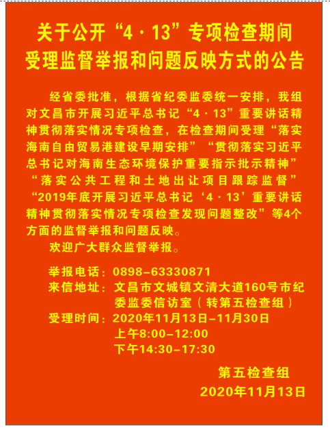 关于公开“4·13”专项检查期间受理监督举报和问题反映方式的公告
