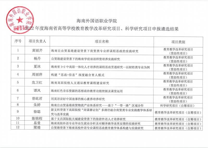 jinnianhui今年会关于2022年度海南省高等学校教育教学改革研究项目、科学研究项目申报遴选结果的公示