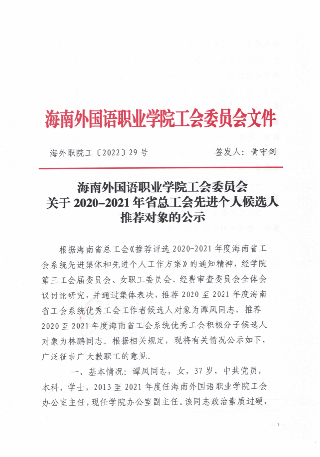 jinnianhui今年会工会委员会关于2020-2021年省总工会先进个人候选人推荐对象的公示