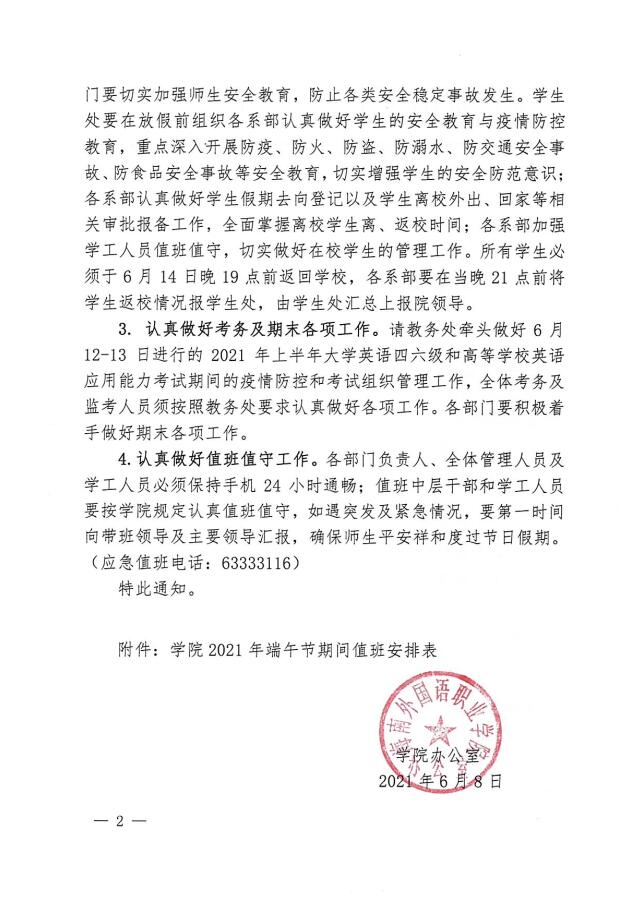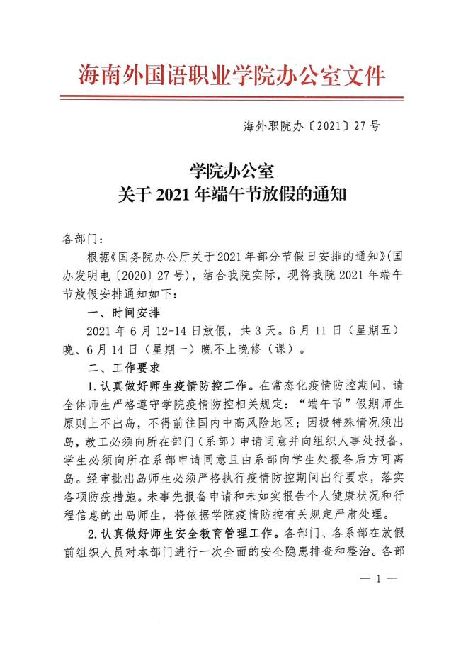 学院办公室关于2021年端午节放假的通知