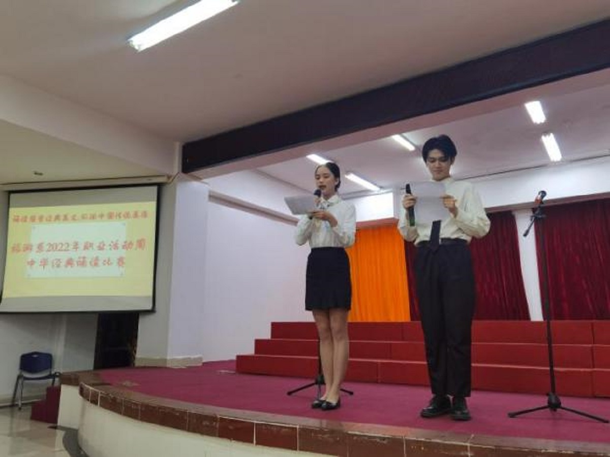 2022年5月11日14:30,jinnianhui今年会旅游系2022年职业教育活动周“诵读国学经典美文·弘扬中国传统美德”国学经典诵读比赛在多功能报告厅顺利举行。
