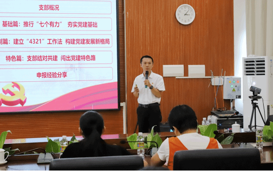 会上,由国际商务学院第二党支部书记林道汛分享创建及申报经验。他从支部概况、推行“七个有力” 夯实党建基础、建立“4321”工作法构建党建新格局、支部结对共建 闯出党建特色路等四个部分图文并茂、生动细致地分享了国际商务学院第二党支部在样板支部中的建设心得与经验。参会同志就本次经验分享也展开了热烈的讨论。