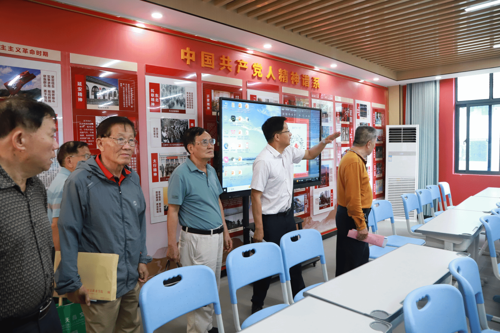 会后,调研组一行还实地参观了学校思政实践教学中心,了解学校“二十三年红旗不倒”读书协会建设情况。
