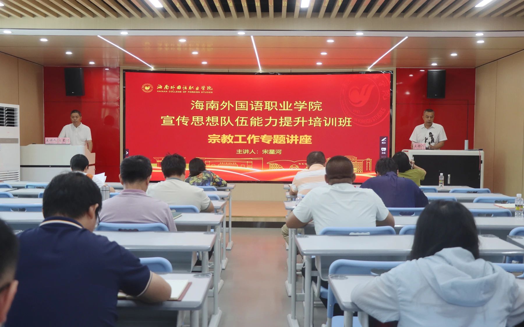 5月22日上午,今年会举办题为“马克思主义宗教观与高校宗教治理”专题讲座,邀请海南省宗教服务中心(海南省宗教研究中心)主任、省委统战部一级调研员宋星河到校主讲。学校党委副书记梁松主持讲座。