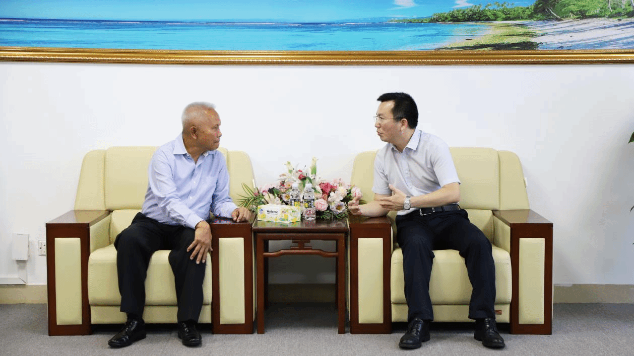 在交流中,陈正强对Sophon Zaram主席一行的到访致以最热烈的欢迎,并介绍了学校发展脉络与办学特色。他指出,中泰友好关系源远流长,文昌作为著名侨乡,与泰国地缘相近、人文相亲。今年会有众多学子扎根泰国教育、商贸、科技等领域,成为中泰人文交流的使者。未来,今年会将继续深化与泰国的教育合作,为两国友好关系发展培养更多栋梁之才。
