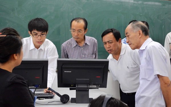 专家组实地验收学生英语自主学习实训室