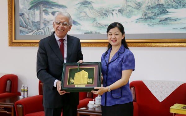 李渝凤院长亲切会见来访者一行,并与卡洛斯•安德烈教授互赠纪念品