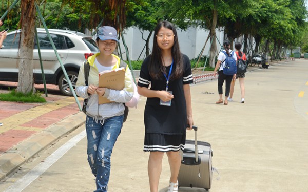 据悉,为确保新生入学期间能顺利找到各系部报到处,我院志愿者们在汽车站、火车站、机场分别设有接待处,从上午七点开始,他们就开始了一天的接待工作。据现场志愿者介绍,新生下车,他们就帮新生提行李,介绍学校周边及校内环境,同时告知新生报到的流程和注意事项,介绍文昌本地的风土人情,一切都登记好后,他们又带领充值校园卡、建议他们购置必须的生活用品。2016级新生丁同学感动地说:“这些迎新的学长学姐们,顶着骄阳搬箱子、提行李,他们热心又耐心地帮我们解决各种困难,是我们走向大学生活的温暖桥梁。”
