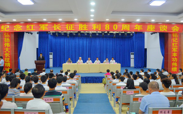 在红军长征胜利80周年之际,为缅怀革命先烈,弘扬“长征”精神,10月26日上午,我市举办纪念红军长征胜利80周年活动,省关工委主任陈玉益及爱国主义教育团成员,文昌市委书记,副市长等出席活动。我院红旗不倒读书协会的40多名学生在学院关工委、社科部负责人及老师的带领下参加了此次活动。