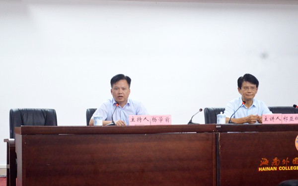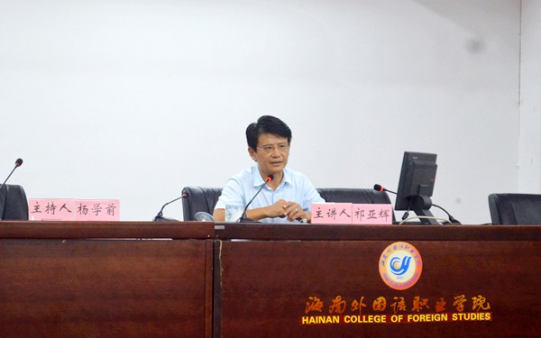 为深入学习贯彻党的十八届六中全会精神,使广大师生员工进一步深化对全面从严治党的必要性和重要性的认识,深化对中华民族伟大复兴的中国梦的认识,深化对当前中国和平崛起的战略机遇与挑战的认识,11月22日晚,我院特邀海南省社会科学院副院长、海南省社会科学界联合会副主席、海南省高校思想政治理论课特聘教授祁亚辉博士来我院,为广大师生作《走在民族复兴大道上的当今中国》专题讲座。杨学前副院长主持讲座。
