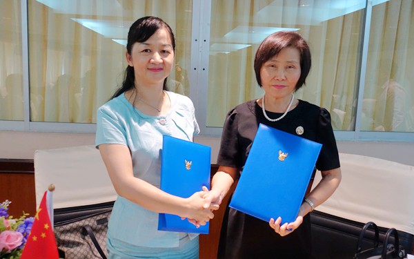 李渝凤院长与吞武里皇家大学于瓦拉卡•维威塔雅洛校长签订学生交流学习管理补充协议