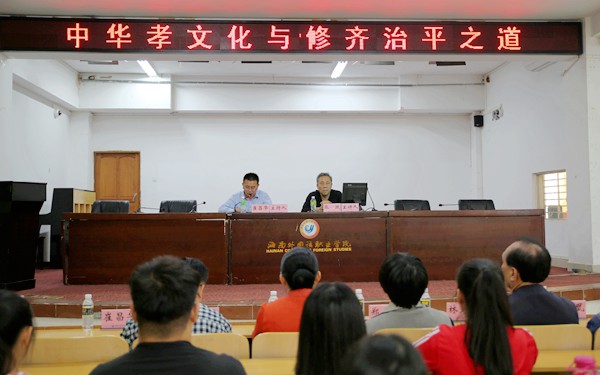 13日上午,国际儒学联合会教育传播普及委员会主任、中国人民大学张践教授做客我院,为广大师生作了一场题为“中华孝文化与修治平之道”的精彩讲座。我院党委副书记、纪委书记崔昌华主持讲座。文昌市有关职能部门领导、来宾与我院师生共同聆听了讲座。