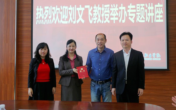 随后,李渝凤院长代表学院向刘文飞教授颁发我院客座教授聘书。