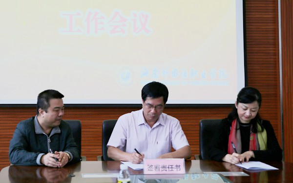会议最后,学院党委书记陈礼民、院长李渝凤与相关部门现场签订了《学院2017年度党风廉政建设责任书》。