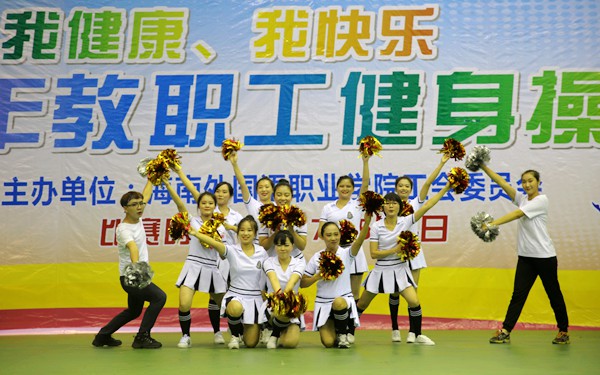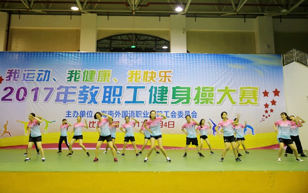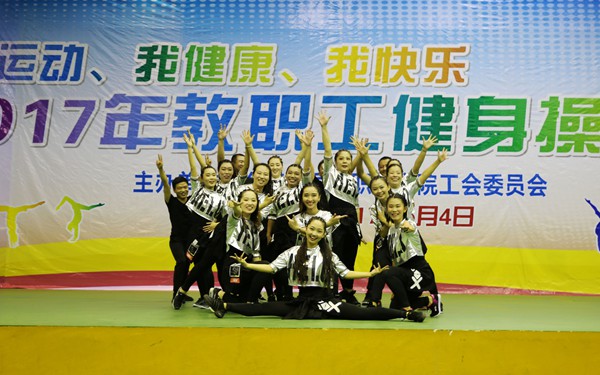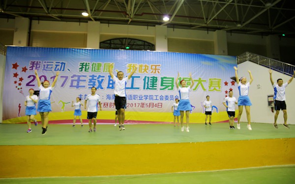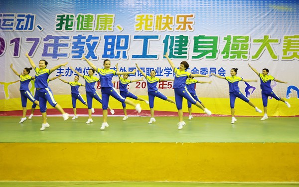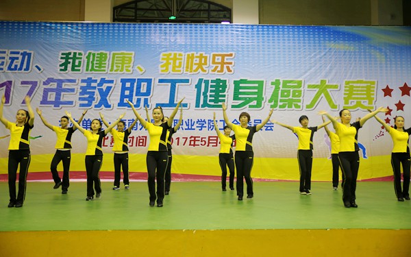 为丰富教职工文化生活,全面落实全民健身计划,深入推进我院的阳光体育活动,积极树立“我运动、我健康、我快乐”的健身理念,5月4日晚,我院在体艺馆举办2017年教职工健身操大赛,来自各部门、系部的8支队伍齐聚一台,竞技风采。学院领导陈礼民书记、崔昌华副书记、周运诗副院长、杨学前副院长到场观看比赛。