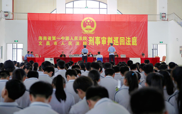 为迎接“6·26”国际禁毒日,呼吁大家共同抵御毒品的危害,更好地维护社会治安稳定,6月21日下午,文昌市人民法院刑事审判巡回法庭在我院公开开庭审理并当庭宣判被告人叶某、王某、刑某等涉嫌犯贩卖毒品罪、运输毒品罪共8宗毒品案,以案说法,直观展示毒品犯罪的法律后果、感知毒品危害,教育学生自觉远离毒品,共建无毒校园。我院党委副书记、纪委书记崔昌华以及纪委办、学生处、团委等部门负责人、各系部负责人,和来自我院、文昌市实验高中等学校在内的共1500多名师生共同旁听了此次庭审活动。