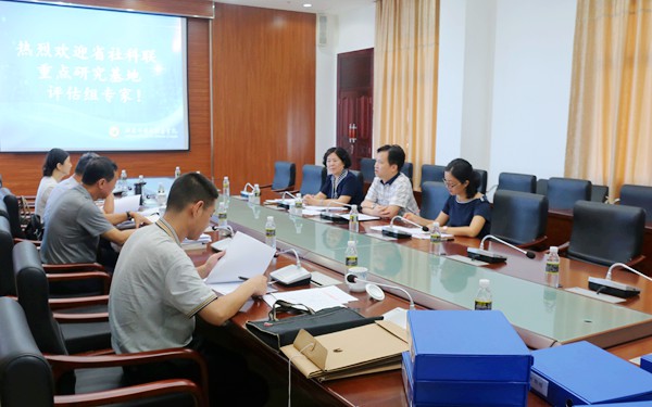 评估组专家首先实地考察评估了研究基地的办公场所、基础设施和图书资料,充分肯定了研究基地良好的办公条件和丰富的图书资料。在综合楼7楼第一会议室召开的综合汇报和分项检查环节,研究基地副主任、我院副院长杨学前对专家组一行的到来表示欢迎。研究基地副秘书长刘丽艳教授按照评估指标,对基地近两年来的发展建设情况作了简要的汇报和自评估。