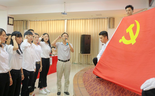 会议期间,参训学员代表作了表态发言。新加入中国共产党的同学们面向党旗宣誓,做出他们人生中最郑重的承诺。组织人事处符婕老师就培训班的课程内容、时间安排等具体事项向学员们做出强调和说明。