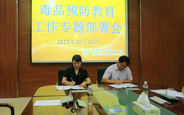 会议最后,李渝凤院长代表学院与部门代表现场签订2017年禁毒工作目标管理责任书,共同贯彻落实预防毒品工作要求。