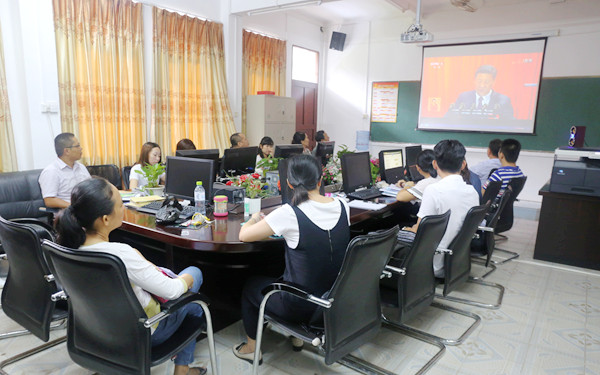 10月18日上午,中国共产党第十九次全国代表大会在北京隆重开幕。我院全体领导、中层管理干部、在校师生党员在综合楼各会议室、多媒体教室等多个场所集中收看十九大开幕会,聆听习近平总书记代表十八届中央委员会向大会作的报告。我院师生为十九大的胜利召开感到欢欣鼓舞,并在收看结束后纷纷发言,畅谈对习近平总书记报告的感想与体会。