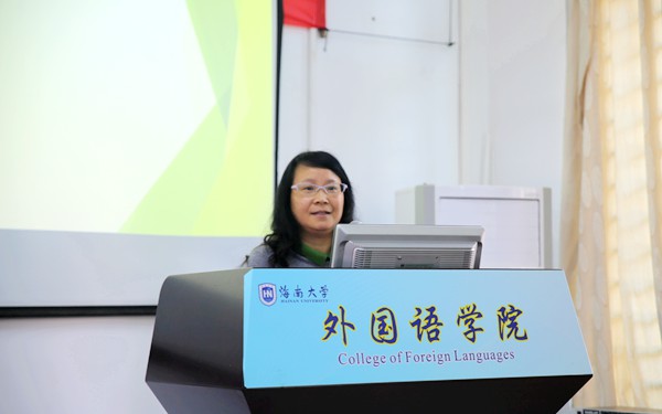 广西认知诗学研究会会长、广西师范大学刘玉红教授作《从范畴化理论看英语教材非虚构文本的文学性》主旨发言,指出范畴化是一种基于体验以主客观互动为出发点,对外界事体(事物、事件、现象等)进行主观概括和属类划分的心智过程,是一种赋予世界以一定结构,并使其从无序转向有序的理性活动,也是人认识世界的一个重要手段。发言中,她利用高中英语教材和大学英语教材来举例,对它们进行了深层剖析,指出英语教育一直在路上,英语教学改革也一直在路上,让人受益匪浅。