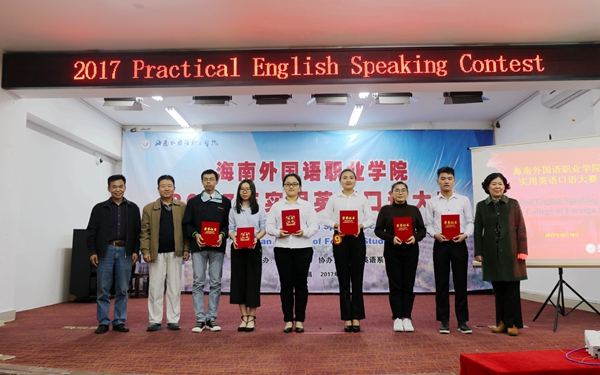 为通过竞赛进一步深化学院英语课程教学改革,不断激发学生学习英语的积极性,提高学生的英语口语表达能力,同时为我院参加明年全省实用英语口语大赛储备人才,12月19日晚,由教务处主办,团委、英语系协办的我院2017实用英语口语大赛在图书馆多功能报告厅成功举办。由各系部选拔推荐的20余名同学参加了比赛专业组和非专业组的角逐。我院景志华教授、刘丽艳教授、刘榜离教授、樊永前教授、张萍主任、翁天月老师、温春雨副主任担任大赛评委,国际商务系外教Helen老师担任主试官。