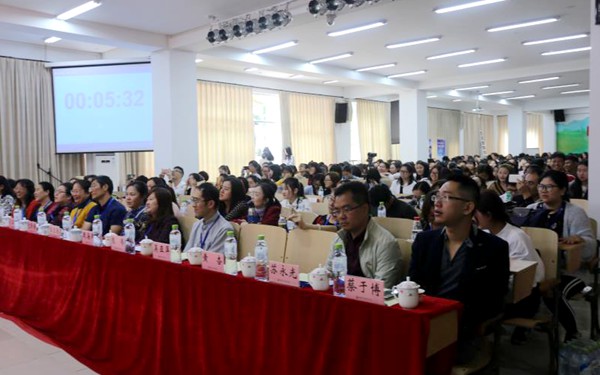 随后,高等教育出版社外语出版事业部区域总监徐宇华女士作讲话,评委组组长海南师范大学外国语学院院长杨蕾达教授宣布大赛开赛。
