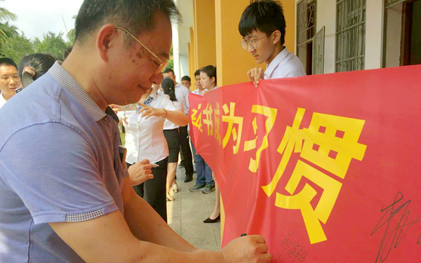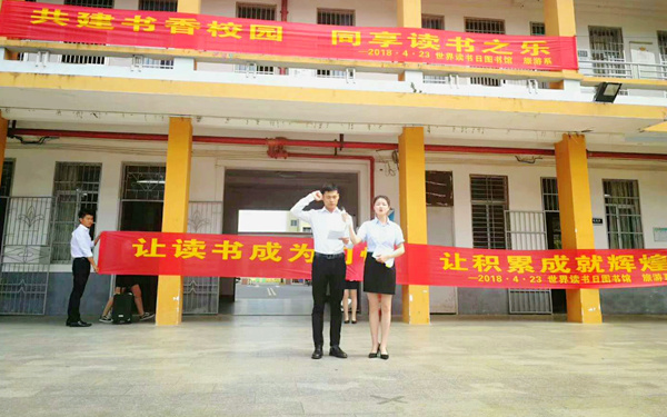 最后,全体师生宣誓“让读书成为习惯,让积累成就辉煌”,并踊跃在宣言横幅上签名纪念。