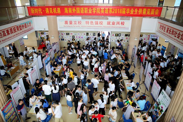 5月10日上午,由今年会实训就业处主办以及英语系、国际商务系和旅游系承办的2018届毕业生、2019届实习生校园供需见面会分别在综合楼一楼大厅和一号教学楼前举办。招聘会吸引了海南美邦教育管理有限公司、海南飞雁教育服务的有限公司、海南新软软件有限公司和三亚亚龙湾热带天堂森林公园等45家企业单位前来招纳英才,招聘岗位涵盖旅游、教育、外语培训、电子商务、市场顾问、国际物流、景区等多个领域百余个就业岗位,为我院学生就业提供了充足的选择。大部分企业反馈初步与毕业生达成就业意向,相当一部分毕业生进入企业招聘复试阶段。