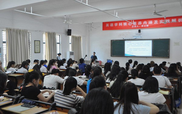 5月11日,李立新老师为英语系的老师和16少儿师资班的同学们深度解读了英语学科核心素养的内涵,并结合视频课例给大家展示了如何把英语学科核心素养具体渗透到小学英语课堂教学的全过程。