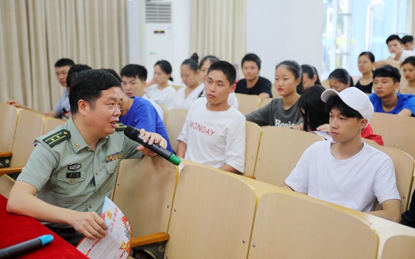 文昌市人民武装部领导钟理向现场有参军报国意向的近200名大学生进行了宣讲,内容分为五个方面:一是当兵很需要、二是当兵很光荣、三是当兵很过瘾、四是当兵很成才、五是当兵很优惠。随后,他还结合当前我国的国防和军队现代化建设形势,解读了大学生当兵的各项政策,目的和意义,殷切希望同学们不断增强国防意识,鼓励怀揣梦想的有志青年投身军营,在军营中锤炼自己,书写自己最精彩的青春篇章。
