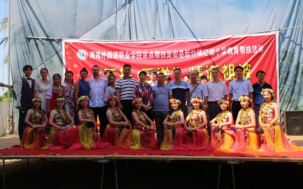 我院院长李渝凤、副院长周运诗、党委委员梁松带领有关职能部门负责人、师生参加活动,定安县政协副主席、新竹镇委书记陈小燕,定安县妇联副主席宋传龄,定安县新竹镇镇长薛根贵,我院驻村第一书记李诗钰,祖坡村委会负责同志,祖坡小学校长,祖坡村群众代表等与孩子们共度节日。
