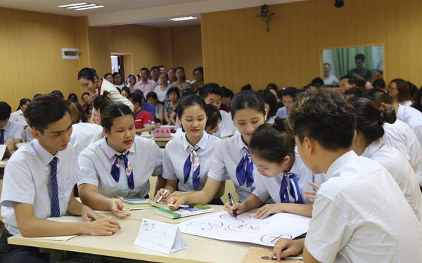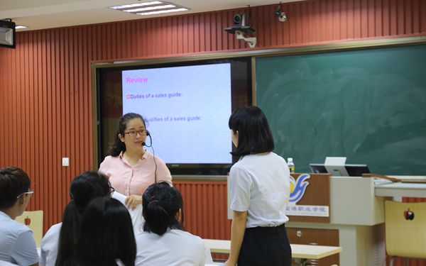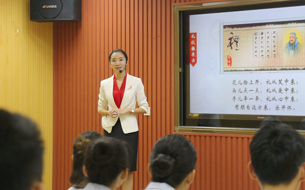 吕洁如老师教授的是手势礼仪,在课上,她以小组形式让同学们轮流上台讲解礼仪知识,同学们通过生动有趣的讲解形式,为课堂带来不少欢笑声。此外,吕洁如老师将礼仪贯彻到整节课上,从学生上课时的形象检查整理到下课时的歌曲齐唱,给观摩人员留下了深刻印象。