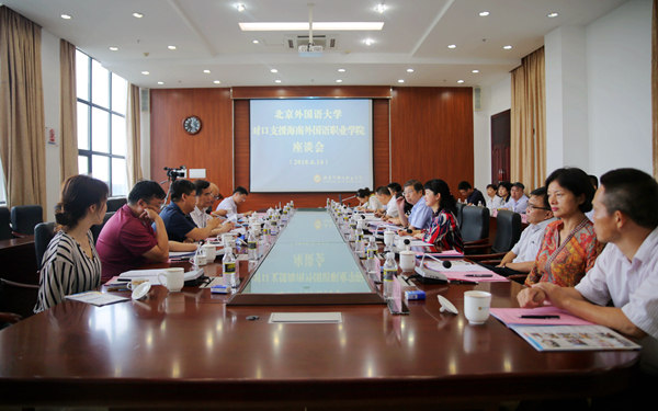 6月14日下午,北京外国语大学对口支援我院工作座谈会在综合楼7楼第一会议室召开,就全面推进对口支援jinnianhui今年会建设相关问题进行座谈交流。