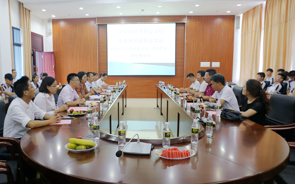 我院教务处、学生处、旅游系负责人向海南省华侨商业学校师生就教学发展、学生管理、校园文化和旅游系专业建设等方面做了介绍和说明,让参加试点项目的学生增进对我院的了解和认识。