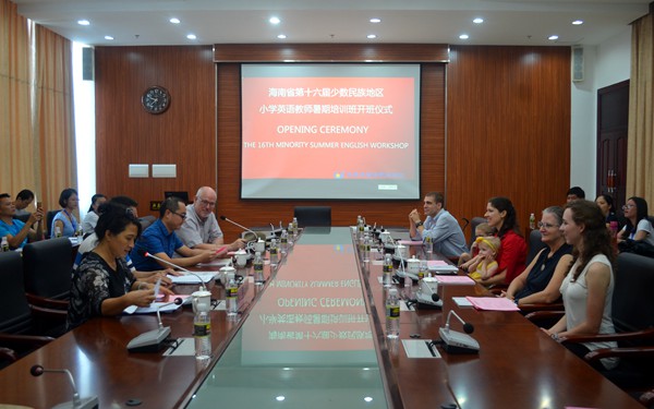 据悉,海南省少数民族地区英语教师培训班自2003年开始举办,至今已成功举办了十六届,有效地促进了海南少数民族地区英语教师的教学水平。。本届培训班为期四个教学周,学员们将在美国国际教育交流协会外籍教师的指导下,对英语听说能力进行全面强化和提高,并学习先进的英语教学方法,强化英语教学能力。