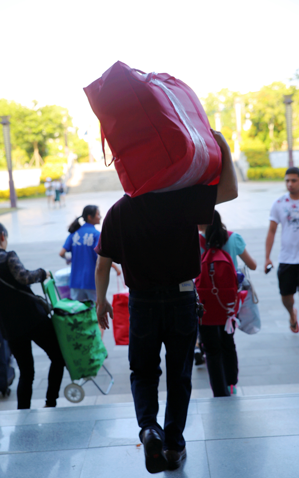 他们在背起行囊的同时也背起了孩子们的梦想。亲情是宁愿自己汗流浃背,也要让孩子等到一丝凉爽;是宁愿自己饿着肚子,也要先帮孩子完成报到。