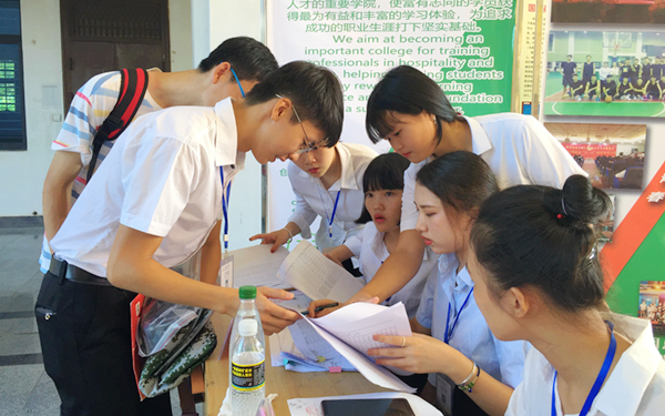 志愿者们有着另外一个可爱的名称:学长学姐。给予新生最贴心的引导,让他们渐渐的消除心中的紧张感、陌生感。有学长学姐们的温馨服务,很多新生开始放下心结,与学长学姐们欢快畅谈。