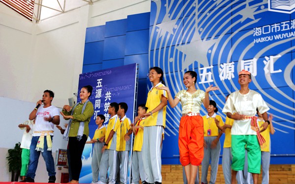 为了宣传东语系小语种语言的魅力,展现东语系的语言文化特色,9月14日下午,我院东语系小语种交流团前往海口市五源河学校开展文化交流宣传,30多名学生演员(包括柬埔寨外教和留学生),通过一场集东盟小语种语言歌曲和歌舞、柬埔寨传统长鼓舞、各国服装秀等节目为一体的综合演出,为五源河学校师生带来一场充满东盟文化异域风情的演出活动,深得五源河学校师生的赞誉。